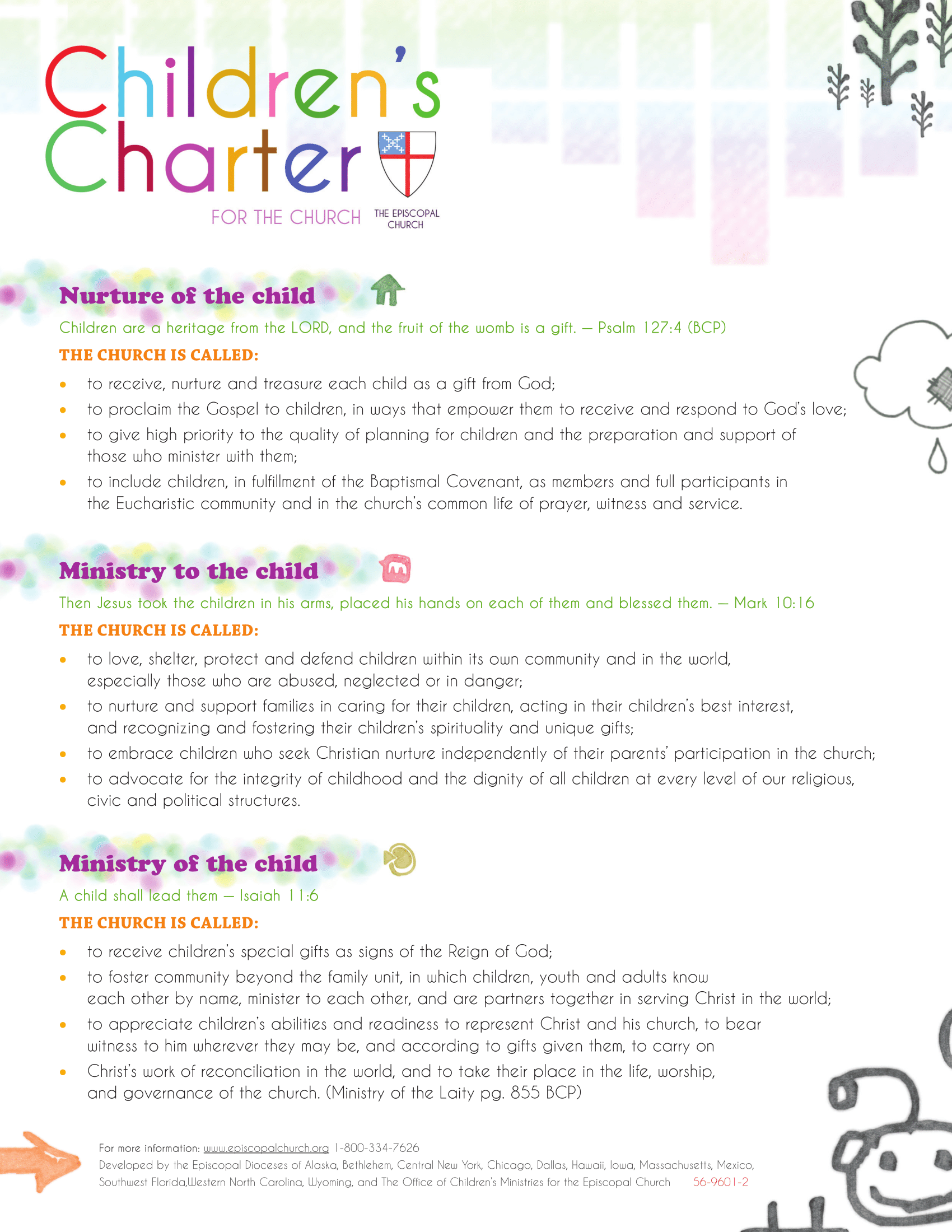 When it comes to children and youth, we all have a special responsibility to think about how everything that we do at church can have either a positive or a negative impact on the children and youth who worship here and are full members of our congregation. If you’ve ever been present for a Baptism, you have been asked the question, “Will you who witness these vows do all in your power to support these persons in their life in Christ?” And your answer, and the answer of the congregation was, “We will!” Sometimes that support will look like teaching Godly Play or stepping up to be a TYGMOS (This Youth Group Meets on Sundays) leader. Other times it will mean smiling at a child who is having a rough day, showing genuine interest in the young people in our community, or even fighting against climate change, which is the number one priority and concern for so many youth today.