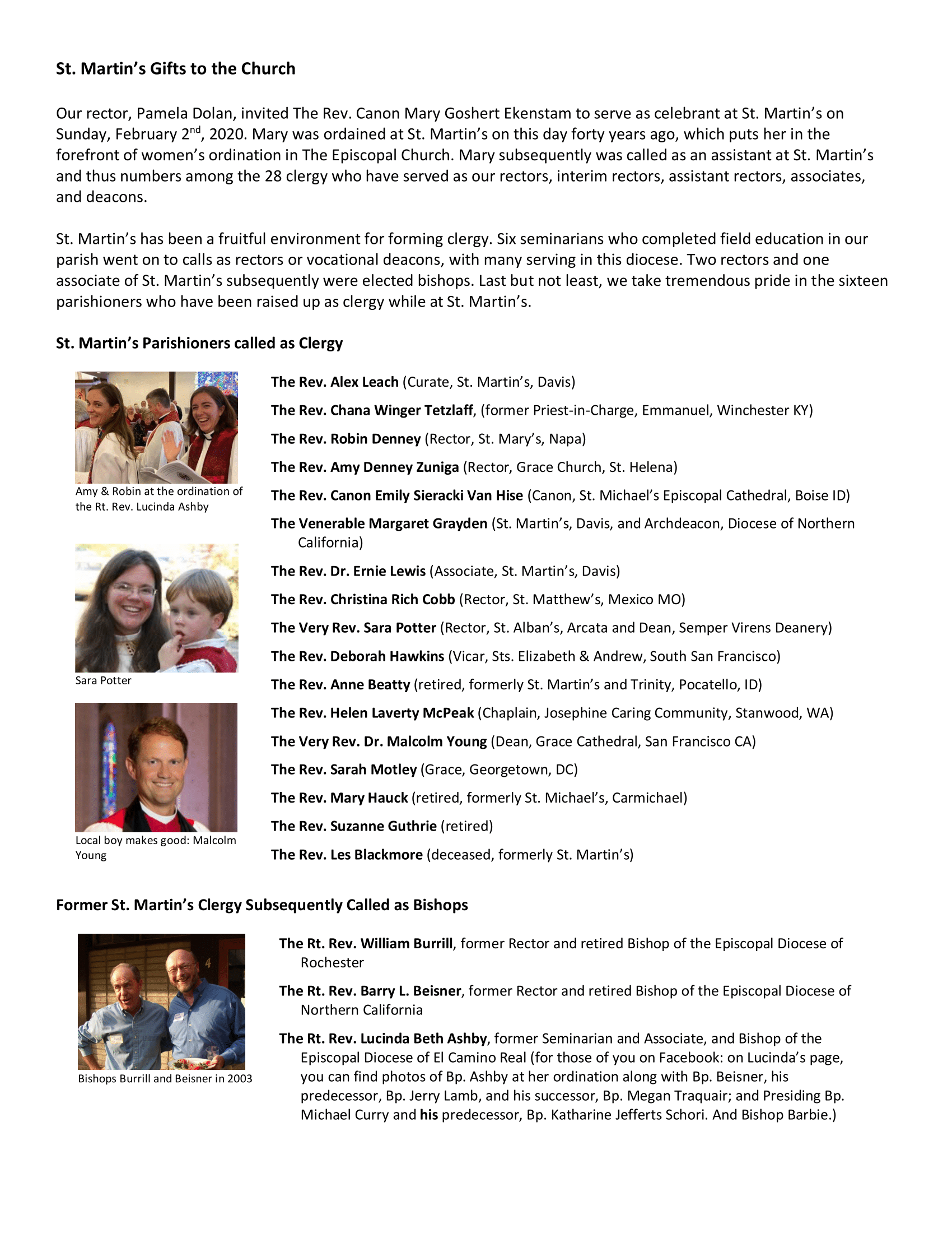 St. Martin’s has a long history of raising up parishioners who have been called to ordained ministry.